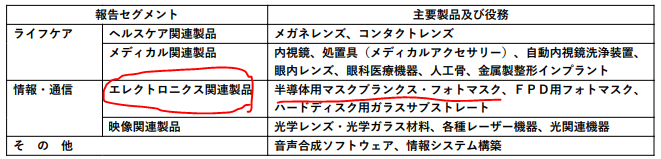 Mask는 Hoya의 Segment중 Electronics related products로 분류를 해놓고 있다.
