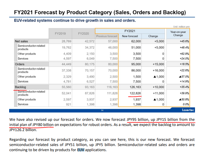 이 Lasertec사의 forecast자료를 찾아보도록 하자(아래는 2021년2월 공시한 자료다)