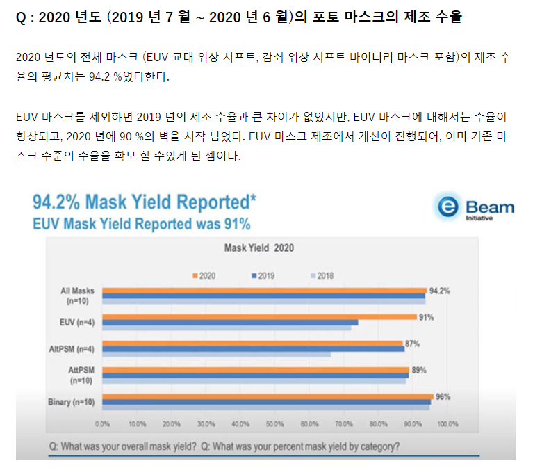 현재는 삼성과 TSMC에 치열하게 경쟁을 하고 있는 EUV용 마스크도 ASG와 함께 공급하는 회사이며, 이 기술을 위해 20년간 기술개발을 했다고 하니 이 기술장벽이 쉽지 않은것 같다. (아래)